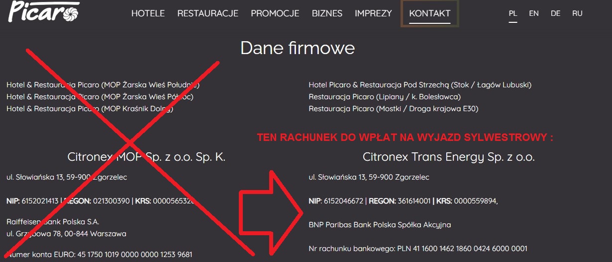 ADRES HOTELU I DANE DO PRZELEWU (tu wpłacamy tylko za noclegi i sylwestra. Razem, jeden przelew. NIE WPŁACAJ na to konto opłaty za kursy tańca). :